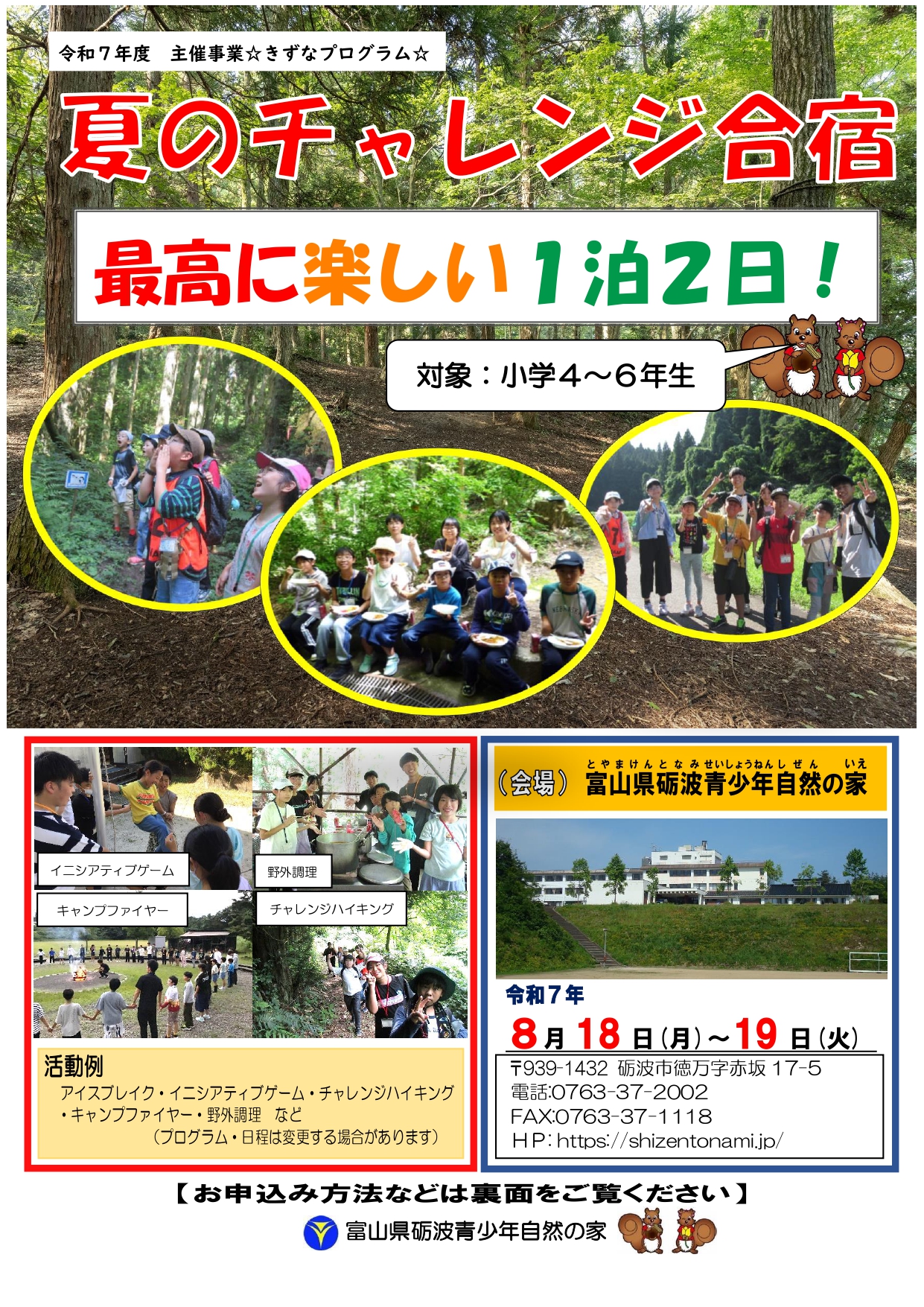 富山県砺波青少年自然の家は、利用する人たちが、集団生活や自然体験活動、