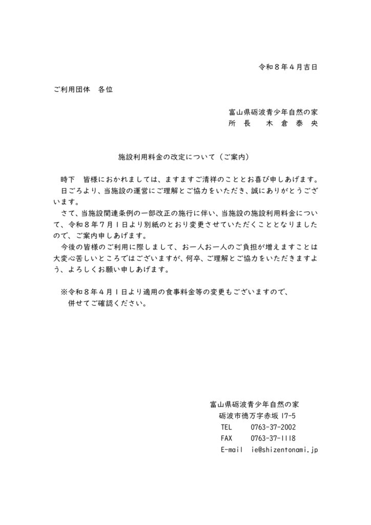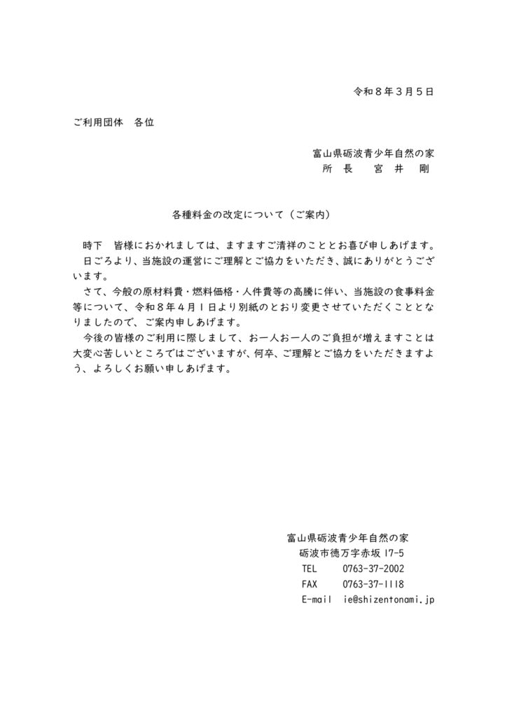 【ご案内】料金改定について